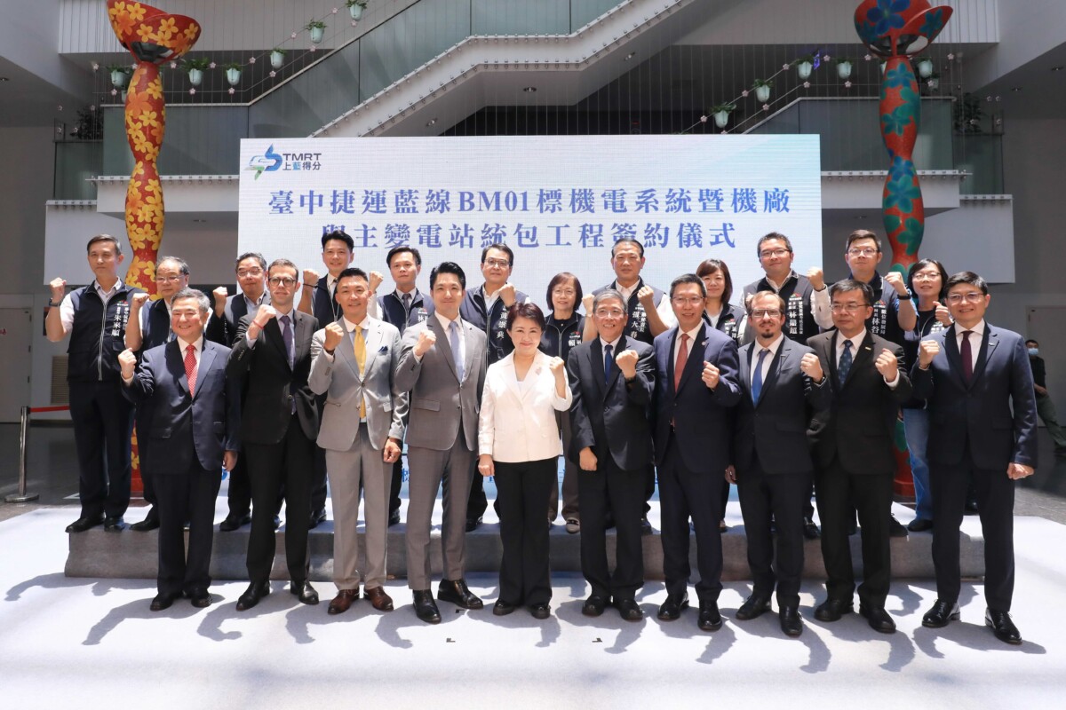 中市府捷工局長蘇瑞文說明,BM01標涵蓋全線機電系統、龍井機廠及二座主變電站等關鍵設施,為捷運藍線的「中樞與心臟」,今年4月2日決標,由新加坡科技電子有限公司、法國阿爾斯通運輸股份有限公司、韓國現代樂鐵股份有限公司與我國中鼎工程股份有限公司聯合承攬。捷運藍線全長24.78公里,西起台中港,東至東區新建國市場,全線採用先進的CBTC通訊式列車控制系統(全自動無人駕駛),並配置28列電聯車,預計於民國123年完工通車。
