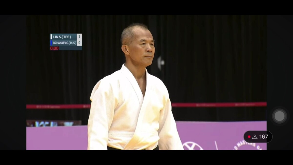 現年62歲的林世明,是柔道七段高手,過去曾為台灣柔道國手,戰功彪炳。此次代表出戰世界壯年運動會,在冠軍戰中迎戰實力堅強的俄羅斯選手。比賽一開始雙方即陷入激烈纏鬥,互抓衣領試圖摔倒對方,場面緊張。儘管對手數度試圖攻勢摔技,林世明均憑藉老道經驗精準化解。
